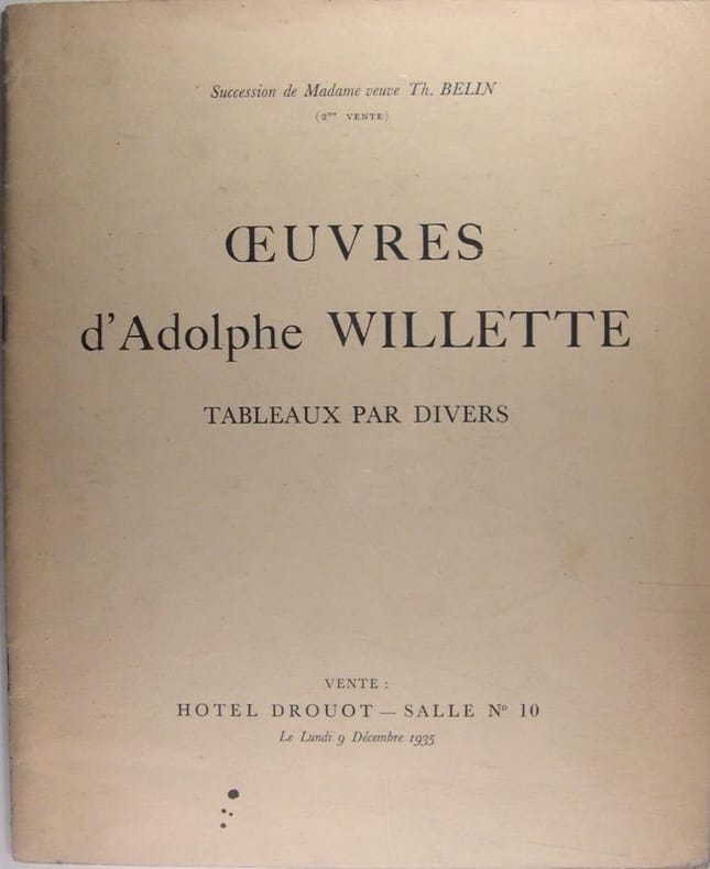Hôtel Drouot, 1935. Plaquette in/4 (27 x 22 cm) brochée, couverture imprimée, illustrations en noir, 15 pages, 77 lots (prix finaux écrits en marge)