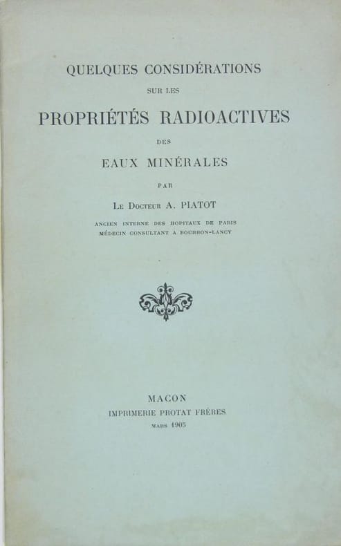Comparaisons sur les eaux de Grabenbäcker, Plombières, Bourbon Lancy, Bains les Bains, Luxeuil, Vichy, Néris, Bagnoles de l'Orne, Salins, Moutiers, Cauterets, Royat. Fermeture de la Librairie du 30/12/2025 au 11/01/2026