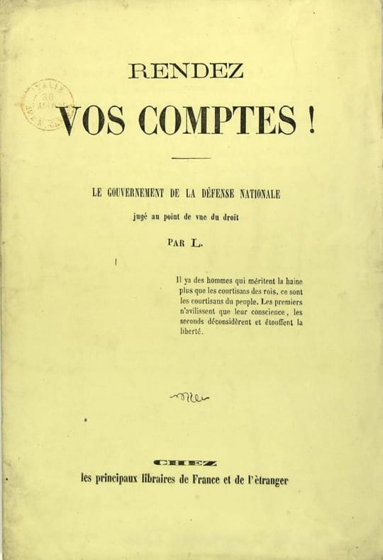 Dentu, Paris, 1871. Plaquette in-8 (23 x 15 cm) brochée couverture imprimée, 15 pages.