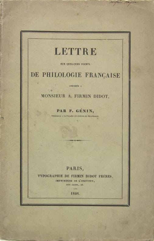 Typographie Firmin Didot, Paris, 1846. Plaquette in-8 (24 x 16 cm) broché, couverture imprimée, 32 p.