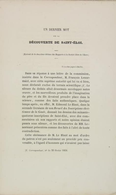 Evreux, A. Hérissey, s.d. (1856). Plaquette in-8 (22 x 14 cm) brochée, couverture muette, 15 pages. Excellent état.