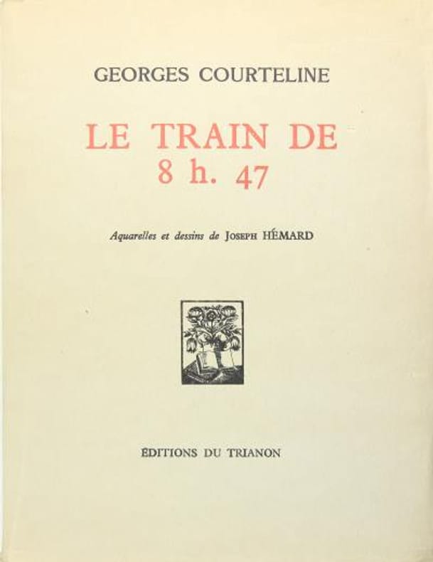 Editions du Trianon 1929 1930 Editions du Trianon, 8 volumes, 1929-1930, demi-chagrin à coins vert, environ 225x170mm, tranches supérieures dorées, couvertures d'origine conservées (2 dos restaurés), édition sur vélin de fil du Marais non numérotée, un portrait de Courteline en frontispice du tome 1, aquarelles et dessins de Joseph Hémard. Reliures insolées, quelques frottements d'usage sur le cuir des reliures, un petit accroc sans manque en bordure de quelques pages (tome 7) une petite image contrecollée sur une page garde, une page de garde roussie (tome 3). Bon état pour le reste.