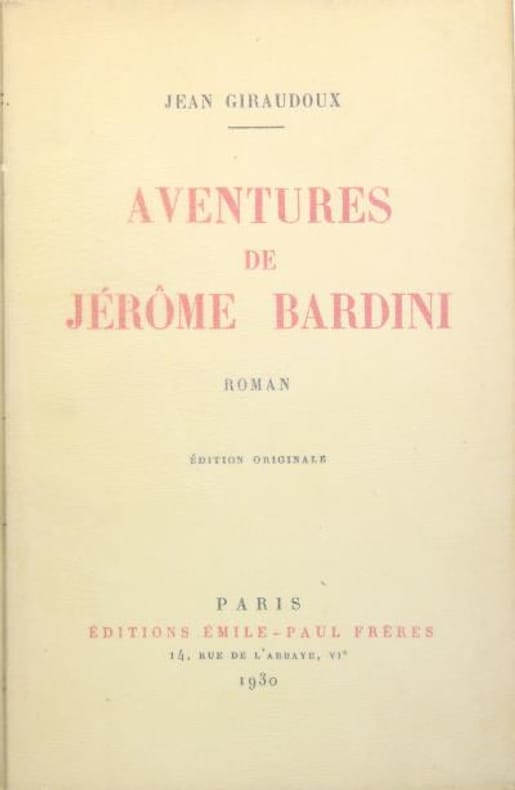 Jean Giraudoux Aventures de Jérôme Bardini. Roman. Edition originale.