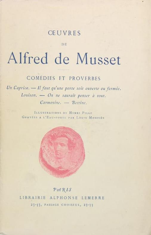 La Nuit vénitienne. André del Sarto. Les Caprices de Marianne. Fantasio. On ne badine pas avec l'amour. Barberine. Illustrations de Henri Pille, gravées à l'eau-forte par Louis Monziès. Classification Dewey : 840.08-XIX ème siècle