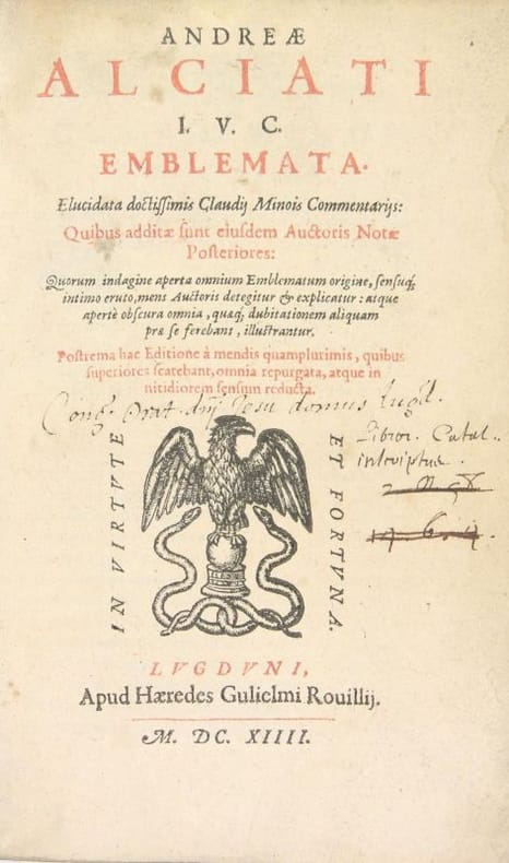 Andrea Alciato (ou Alciati), connu sous le nom d'André Alciat en français et d'Andreas Alciatus en latin, (1492 - 1550) jurisconsulte et écrivain italien de langue latine, émule d'Ulrich Zasius et de Guillaume Budé. Il fut l'un des premiers représentants du courant dit de l'humanisme juridique. Il était un correspondant d'Érasme. Ses Emblemata s’inspirent des Adages d'Érasme pour leur composition en forme de collection et pour leur constante référence à l’antiquité. Les deux recueils connurent un vif succès dès leur parution et fournirent aux hommes de la Renaissance des modèles et des clés qu'ils allaient utiliser dans leur vie intellectuelle et sociale. Son œuvre la plus connue sont les Emblèmes (Emblemata), recueil d'allégories en vers latins sur des sujets moraux, qui eut beaucoup de succès en Europe.