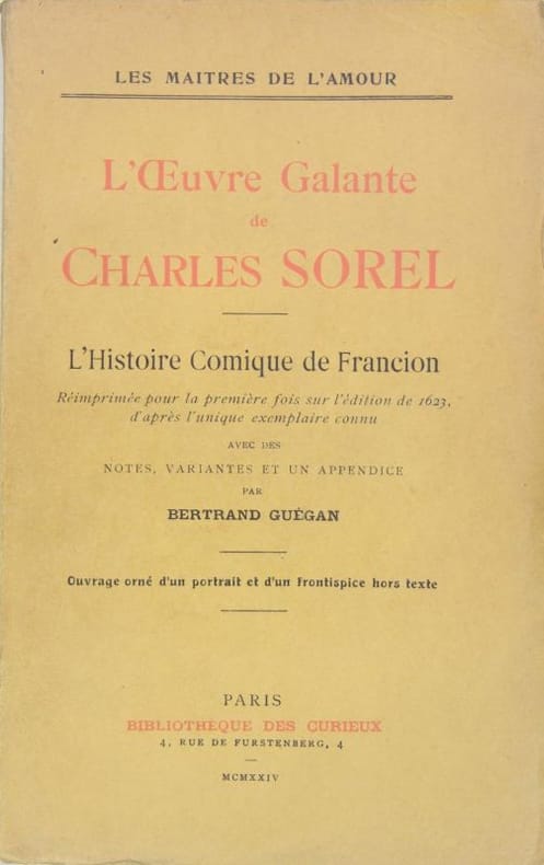 Collection les maîtres de l'amour. Réimpression de l'édition de 1623 d'après l'unique exemplaire connu, avec des notes, variantes et un appendice par Bernard Guégan. Fermeture de la Librairie du 30/12/2025 au 11/01/2026