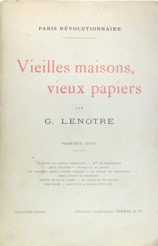 Un des nombreux ouvrages de cet auteur passionné par l’histoire révolutionnaire. Contient : C. Desmoulins, Melle de Robespierre, Savalette de Langes, A. Chenier, maon de Cagliostro, autour de la Du Barry, Tallien, Papa Pache, St Just à Blérancourt...