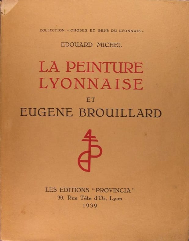Les éditions Provincia, collection "Choses et gens du Lyonnais", Lyon, 1939. In/8 (24 x 18 cm) broché, couverture imprimée (avec un petit manque), illustrations en noir d'Eugène Brouillard, 91 pages, exemplaire numéroté sur Alfa moulin vieux et paraphé de E. Brouillard.