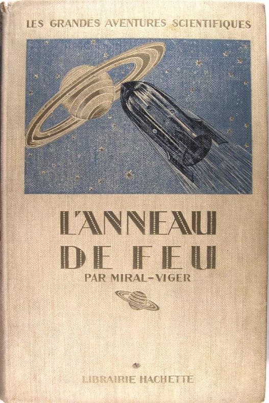 Paris, Hachette, 1922 ; in-4, 380 pp., reliure d’éditeur pleine toile, plats imprimés (mouillures en bas de volume, qui n’atteignent pas le texte). Un voyage vers Saturne par un Jules Verne des années 20. Très bon état.