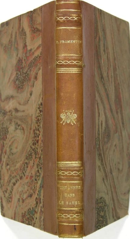 E. Plon 1879 In-4, demi maroquin brun, plats toilés beige, dos à nerfs, XIV- 398 pp. 25 compositions hors-texte d'après les tableaux les dessins et les croquis d'Eugène Fromentin, dont 12 à l’eau-forte par Lerat, Courtry et Rajonet. Infimes rousseurs. Bel exemplaire. Un été dans le Sahara, suivi de Une année dans la Sahel, tableaux du peintre paysagiste composés sous forme de lettes à partir de notes et de croquis pris au cours de deux voyages en Algérie en 1847 et 1855. Edition originale illustrée.