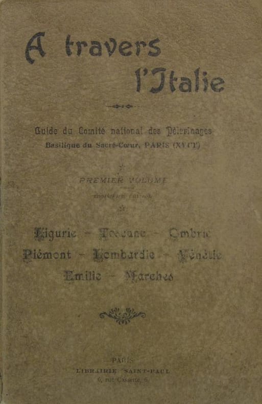 Librairie Saint Paul, Paris, s.d. In-12 (16 x 11 cm) broché, couverture imprimée, illustrations en noir, nombreux plans et cartes rempliés, 472 pages. Brochage fané, "Italie" manuscrit sur le dos.