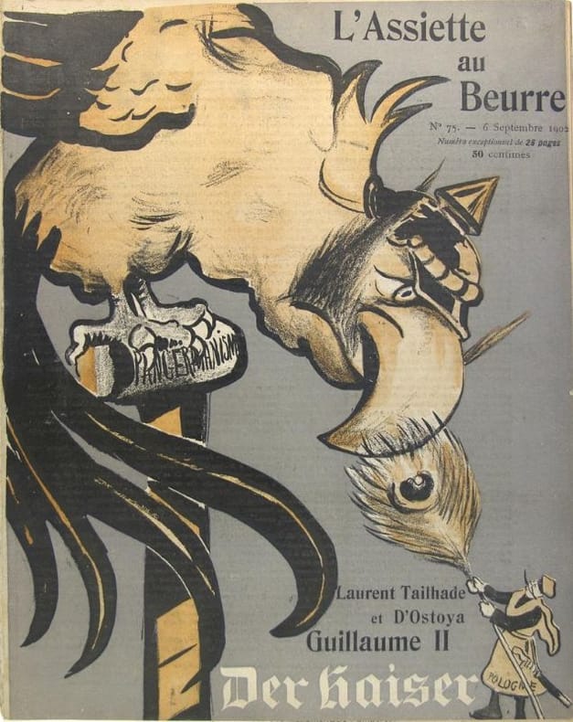 L'assiette au beurre, 1902. Revue in-4 (32 x 25 cm) illustrations en noir et en couleurs d'Ostoya, 12 feuillets. Excellent état.