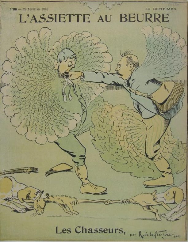 L'assiette au beurre, 1902. Revue in-4 (32 x 25 cm) illustrations en noir et en couleurs de R. de la Nezière, 8 feuillets. Excellent état.