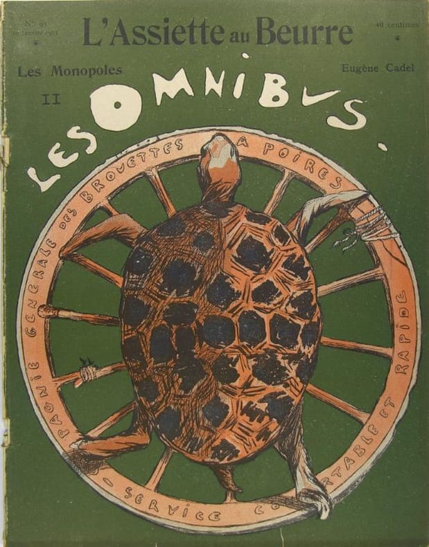L'assiette au beurre, 1903. Revue in-4 (32 x 25 cm) illustrations en noir et en couleurs de E. Cadel, 8 feuillets. Excellent état.