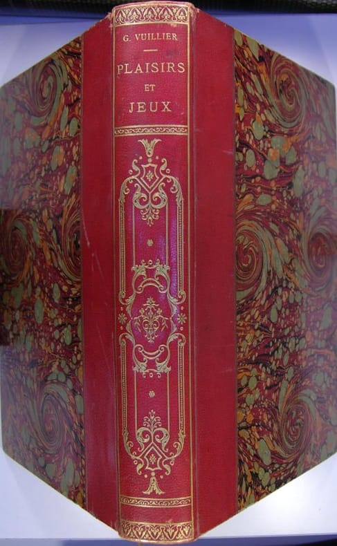 VUILLIER GastonPlaisirs & JeuxParis, J. Rothschild, éditeur,In-4°. Belle reliure percaline, tête dorée, intérieur frais, XV-344 pp., 279 reproductions in-texte et à pleine page et de 19 héliogravures hors-texte dont un frontispice en couleurs d'après une aquarelle de Gaston Vuillier. Un panorama exhaustif accompagné d'une une très belle iconographie.De la poupée à saute-mouton, la chasse aux papillons, la pêche, les billes, les balançoires, le cerf-volant, le croquet, les échecs, les cartes, etc.Un des exemplaires sur papier vélin de luxe numéroté