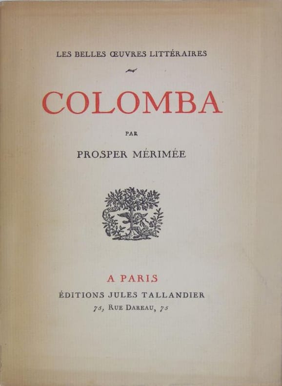 Calmann-Lévy in12. Sans date. Broché. Colomba est une nouvelle de Prosper Mérimée publiée en 1840 dont l'intrigue se déroule en Corse. Elle met en scène Colomba une jeune Corse qui pousse son frère Orso de retour au pays à venger l'assassinat de leur père présumé être l'œuvre de la famille Barricini. L'œuvre explore le conflit entre l'atavisme de la vendetta et les valeurs modernes ainsi que les tensions culturelles