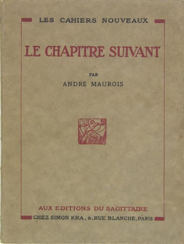 Editions du Sagittaire, chez Simon Kra, Paris, 1927. In/12 (16 x 12 cm) broché, couverture rempliée imprimée, frontispice sous forme de autographe manuscrit de André Maurois. 63 pages. Court envoi de l'auteur en page de faux-titre.