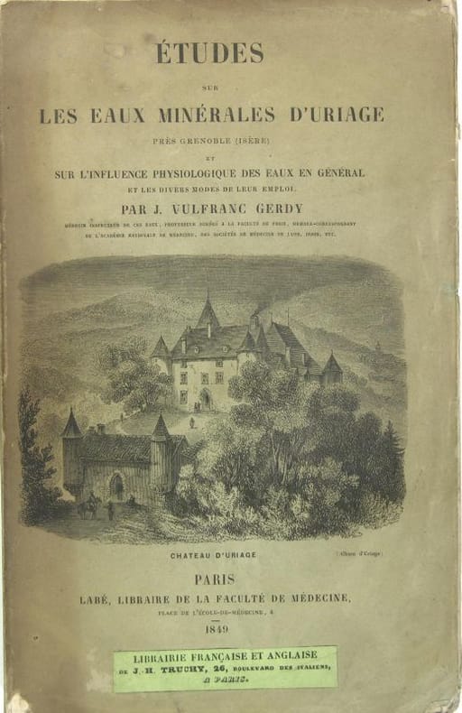 Labé librairie, Paris, 1849. In-8 (23 x 14 cm) broché, couverture illustrée d'une vignette et frontispice vue de l'établissement d'Uriage, 427 pages. Menus défauts en couverture.