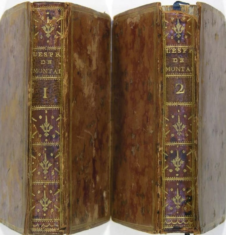 Londres [ Paris ] [ Cazin ] 1783 in 18 (12x7,5) 2 volumes reliures plein veau fauve de l'époque, dos lisses ornés de caissons dorés, pièces de titre et de tomaison de cuir noir, triple filet doré d'encadrement sur les plats, tranches dorées, portrait gravé en frontispice (Michel Seigneur de Montaigne), XXXVI et 362 pages [1], et 341 pages [1], petite usure sur la coiffe supérieure du tome 1. Bon exemplaire ( Photographies sur demande / We can send pictures of this book on simple request )