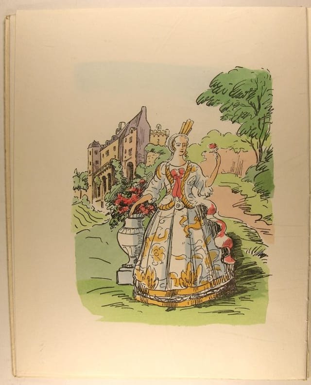 Editions A la rose des vents, La Rochelle, 1957. In/4 (28 x 23 cm) broché, couverture rempliée illustrée d'un vignette, 117 pages. Illustrations au pochoir en couleurs de Louis Suire rehaussées à la main par lui-même. Rousseurs sur la couverture.