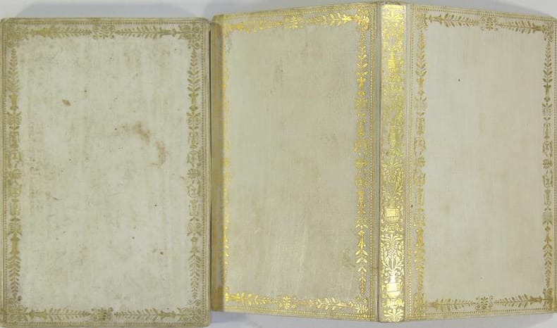 Edition Le Fuel libraire relieur, s.d. (1815). In/16 (12 x 7 cm) cartonnage éditeur sous étui similaire : simili velin à roulette dorée, doré trois tranches, 5 planches dont le frontispice, 108 p. Etui légèrement passé, mais très bon état de l'ouvrage et de ses feuillets.