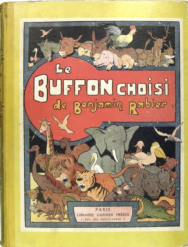Librairie Garnier, Paris, 1924. In/4 (31 x 23 cm) reliure éditeur demi-toile jaune, dos à décor doré (différents animaux), 267 pages. Coiffes légèrement amorties. Usures sur les bords des plats, très bel état des feuillets. Illustrations de Benjamin Rabier
