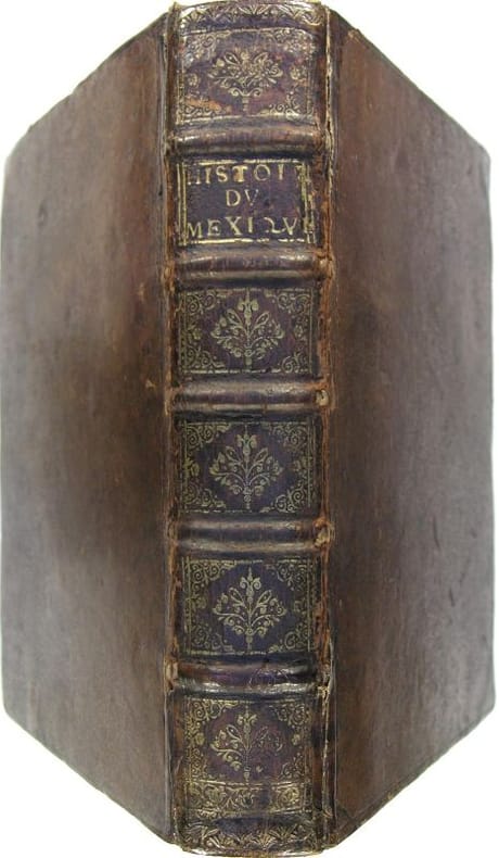 Paris, Jean Bouillerot, 1691. Édition originale in-4° (25x19,5cm), 16ff.-630pp.-12ff. , illustré de 2 cartes et 12 planches , la plupart dépliantes , relié plein veau époque , dos à nerfs orné avec titre , restauration au dos , mouillure en fin d’ouvrage.P1-21 Édition originale de la traduction française ,publié pour la première fois en espagnol en 1684, l’ouvrage connut un succès considérable et fut rapidement traduit en plusieurs langues. Antonio de Solís y Rivadeneyra (1610-1668), dramaturge et historien espagnol, reçut le titre de Premier chroniqueur des Indes. Cette relation de l'expédition d'Hernán Cortés s'attache également à décrire l'empire de Moctezuma II , son fonctionnement , sa structure , ses habitants et leurs coutumes . Chadenat, 459 Sabin, 86475.
