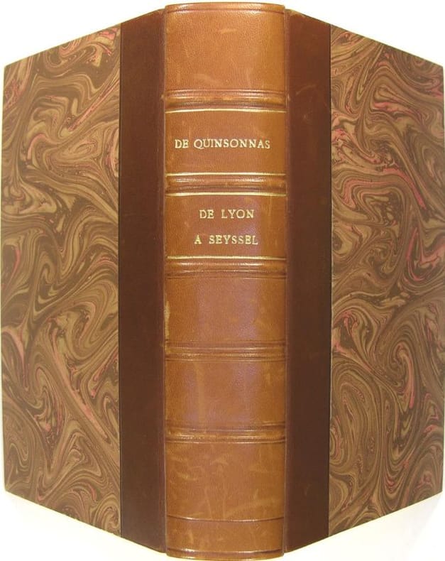 Lyon Imprimerie de Louis Perrin 1858 in 8 (21,5x14,5) 1 volume reliure demi chagrin vert de l'époque, dos à nerfs souligné de filets à froid, V [1] 784 pages [1], avec 7 planches gravées hors-texte, et une carte dépliante en couleurs. I, Départ de Lyon; II, La Bresse, Symon De Blonay ou le combat des Mariés et des non Mariés; III, Le Bugey; IV, Les bords du Haut Rhône; V, Ambérieu; VI, D'Ambérieu à Mâcon; VII, Brou; VIII, Bourg; IX, D'Ambérieu à Rossillon; X, De Rossillon à Culoz; XI, De Culoz à Seyssel; XII, Seyssel et son histoire; XIII, De Seyssel à la frontière. Exemplaire enrichi d'une dédicace signée de l'auteur au Sous-Prefet de Bellaz. Très bel exemplaire, exempt de rousseurs ( Photographies sur demande / We can send pictures of this book on simple request )