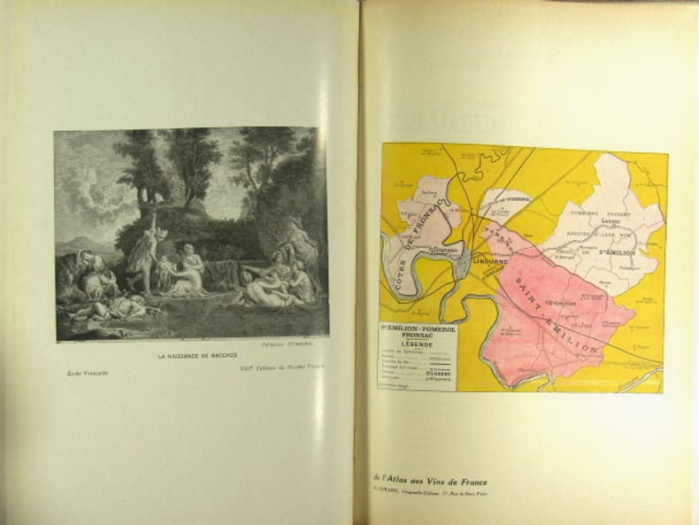 Typographie Plon Frères 17 x 26 Paris 1849 Grand in-8, reliure demi-percaline de l'époque, dos orné de six filets à froid, auteur et titre dorés, plats et gardes marbrés, [3] ff. n. ch. (faux-titre, titre-frontispice gravé, sous serpente, et titre), LXV pp., 73 pp., avec deux titres intermédiaires gravés (Grands vins de Médoc / Vins blancs de Bordeaux), [1] f., de table. Couverture conservée. Edition originale de rare opuscule à la gloire du vin comme facteur de civilisation, dont l'auteur de la première partie serait le Dr. Arthaud, bordelais et auteur par ailleurs de traités sur la viticulture et le vin. Le poème est une déambulation dans le vignoble du Médoc et parmi les blancs de Bordeaux L'ensemble est illustrée de 38 gravures hors texte ou vignettes, auxquelles s'ajoutent les compositions des deux couvertures. Elles sont signées par Pauquet, Daubigny et Bisson & Cottard. Notons que 15 de ces gravures reproduisent des châteaux bordelais (Gironville - 2 vues -, Giscours, Issan, Rauzan, Margaux, Bechevelle, Gruand Larose, Langoa, Laffitte, Lagrange, Latour, Pichon de Longueville, Latour de Carnet, Iquem). Pour mémoire le château de Gironville était la propriété de Martin Duffour-Dubergier (1797-1860), maire de Bordeaux de 1842 à 1848, président de la Chambre de commerce de Bordeaux et actif promoteur des vins de Bordeaux jusqu'à leur classement de 1855. Reliure modeste avec des marques d'usure, rousseurs, bien complet de sa couverture et de ses gravures. Rare.(VeiB26)