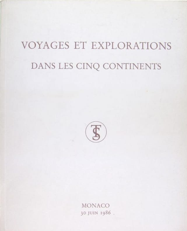 Monte Carlo. 30 juin 1986 [30/06/1986]. Voyages et explorations dans les cinq continents. Précieuse collection de livres anciens du XVè au XIXè siècle. (Monte Carlo: Ader - Picard - Tajan, 1986) [M.C.: catalogue de vente / auction catalogue, bibliophilie, bibliographie, livre, voyage]