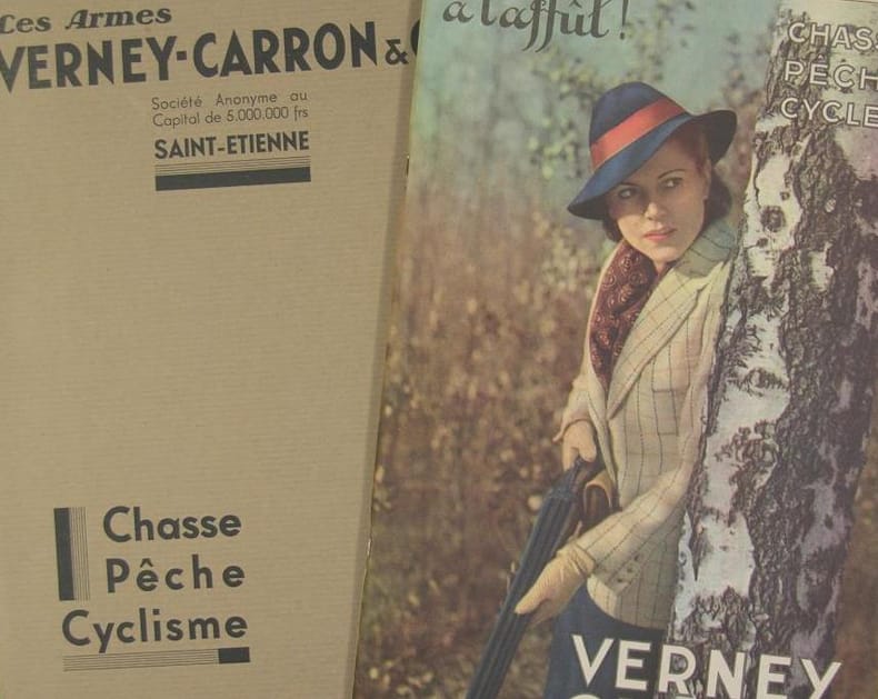 Catalogue Saint Etienne, 1939. Plaquette in/8 couverture illustrée, 100 pages, nombreuses illustrations dont deux planches couleurs (cartouches). Conserve encore son bandeau d’expédition, bon de commande et enveloppe.