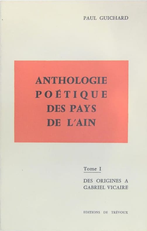 Broché bon état . Contenu propre . Légers plis couverture . 1971. 293 pages . Anthologie poétique des Pays de l'Ain - Tome I - Des origines à Gabril Vicaire