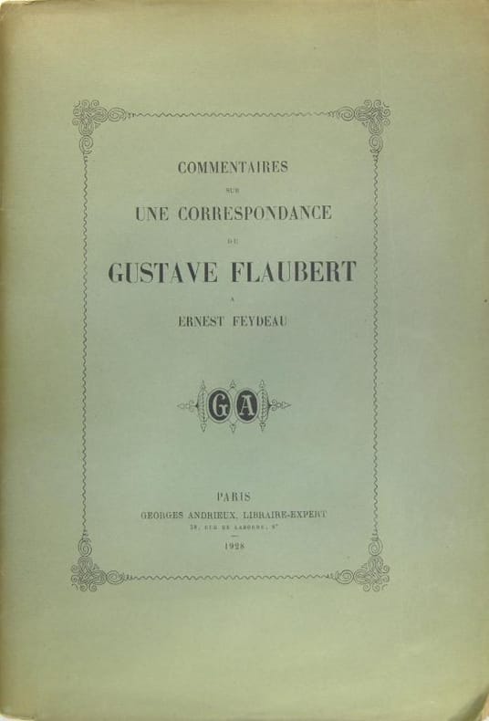 Georges Andrieux Paris 1928 Grand in-8 ( 280 X 190 mm ) de 51 pages, broché. Catalogue de la vente du 3 mai au 2 juin 1928 salle N°10 à Drouot ( catalogue de la 2e vacation - lots 168 à 300 dont 168 à 272 pour la correspondance de FLAUBERT ). Nombreux fac-similés. 1 des 175 exemplaires numérotés sur papier de Rives. Très bel exemplaire.
