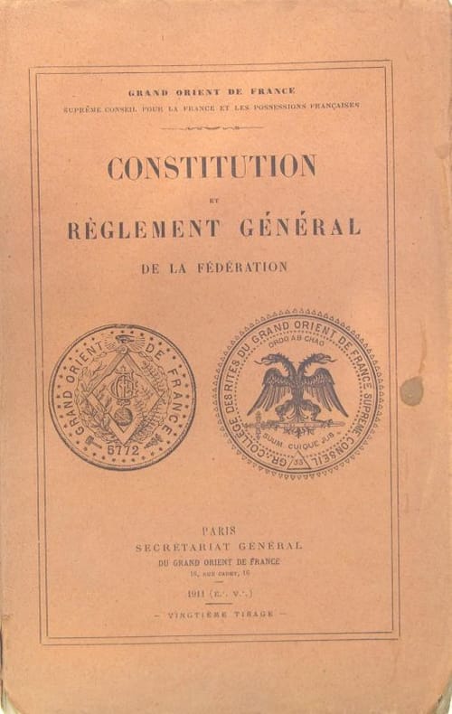 Constitution et règlement général du Grand Orient de France, suprême conseil pour la France et les possessions Françaises. Fermeture de la Librairie du 30/12/2025 au 11/01/2026