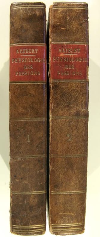 Paris, Béchet, 1825. 2 vol. In-8, reliure demi-basane tenitée verte à dos orné de filets et fleurons dorés, titre et tomaison dorés sur dos (titre sur pièce rouge), 372 & 472p., ouvrage orné de qqs gravures sous serpentes sgnées Lorieux - Édition originale. Table : 1. De l'instinct de conservation considéré comme loi primordiale du système sensible ; De l'égoïsme, de l'avarice, de l'orgueil, de la vanité, de la fatuité, de la modestie, du courage... 2. De l'instinct d'imitation... ; de l'émulation, de l'envie, de l'ambition... 3. De l'instinct de relation... ; de la bienveillance, de l'amitié, de l'estime, du respect, du mépris, de la moquerie, de la pitié, de l'admiration, de l'enthousiasme... 4. De l'amour conjugal, de l'amour, maternel, paternel, filial... Bon état, très faibles rousseurs éparses, reliures un peu frottées, mors fendu sur le tome 1