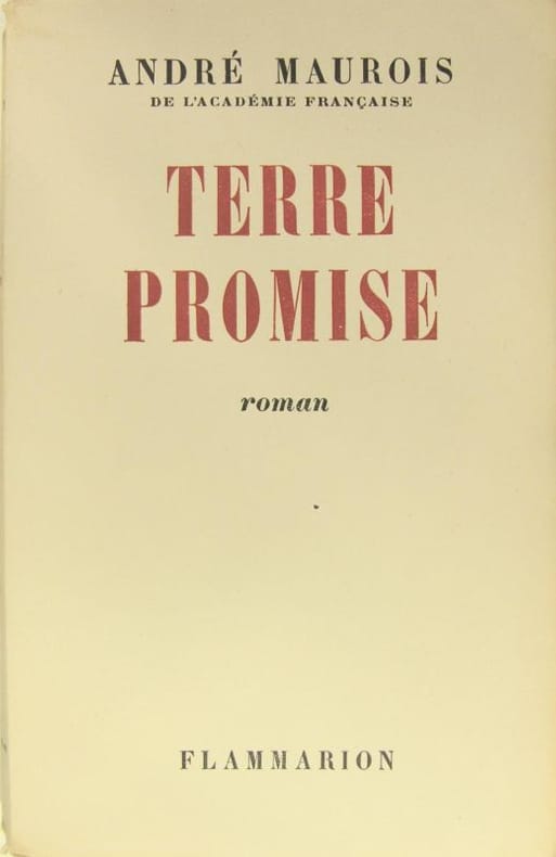 Titre : Terre promise Auteur : Maurois André Éditeur : Flammarion Lieu d'édition : Paris, 26 rue Racine Date : 1945 (copyright Éditions de la Maison Française, Inc., New York) - imprimé en France Reliure : Demi-basane brune, dos à nerfs, plats marbrés vert et crème Etat du livre : Bon état - dos patiné, légers frottements aux coiffes et aux mors, coins un peu émoussés, intérieur uniformément jauni avec discrètes rousseurs, reliure solide Jaquette : Sans jaquette (éditeur) Format : in-12 env. - 18 x 12 cm Langue : Français Particularités : Page de tirage présente mentionnant un tirage limité sur divers papiers (pur fil Outhenin-Chalandre, chiffon blanc Lana, papier alfa, sélections Lardanchet). Exemplaire non numéroté visible. Roman. Description : Bel exemplaire ancien de « Terre promise » d'André Maurois, publié par Flammarion. Joli cartonnage d'époque en demi-basane avec plats marbrés. Titre en capitales sur page de titre, mention de l'Académie française. Impression soignée, papier d'époque.