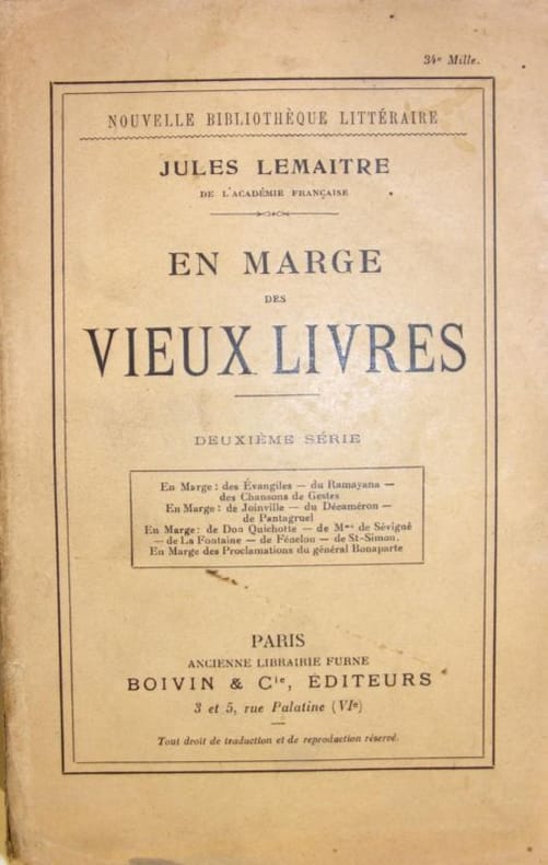 En marge des Evangiles, du Ramayana, des chansons de gestes, de Jonville, du Décaméron, de Don Quichote, de Mme de Sévigné, de La Fontaine, ... Disponible en état d'usage à 29.80 euros et en état passable à 24.90 euros. Classification Dewey : 840-Littératures des langues romanes. Littérature française