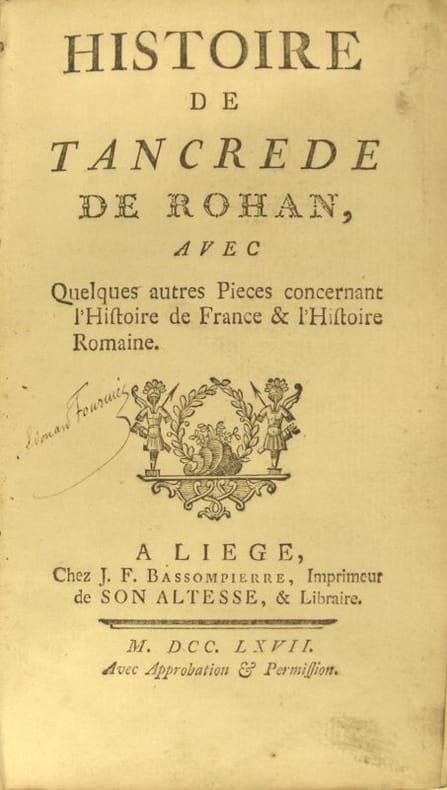 Edition originale. L'histoire de Tancrede de Rohan est suivi de 4 faux-titre délimitant les différentes parties : Remarques sur la naissance de Henri II, Prince de Condé ; Histoire des négociations secretes de la France avec la Hollande ; Observations sur les troubles de la Regence pendant la minorité de Louis XIV ; Recherche sur les finances des Romains ; Des guerres civiles des Romains. Exemplaire aux meubles d'armes sur les plats de la famille de Montmorency-Luxembourg. Alérion et lion. Ex libris L. Dussieux. Tancrède de Rohan(1630-1649) est le fils putatif deHenri de Rohan. Élevé secrètement enHollande, il se vit contester son titre par la fille de Henri,Marguerite, duchesse de Rohan-Chabot, seule héritière de son père. Il le perdit par arrêt duparlement de Parisen 1646, malgré les efforts de la duchesse douairière, sa mère. Cette étude est enrichie de plusieurs recherches du père Griffet, otamment sur les finances des Romains ou sur Henri II, Prince de Condé. - Photographies et détails sur www.Edition-Originale.com -