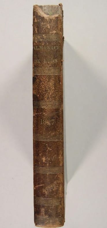 Calendrier de 1827, administration, armée, impôts, postes, chambre de commerce, écoles académies avec professeurs, cercles, hôpitaux, médecins, transports, crocheteurs des ports...