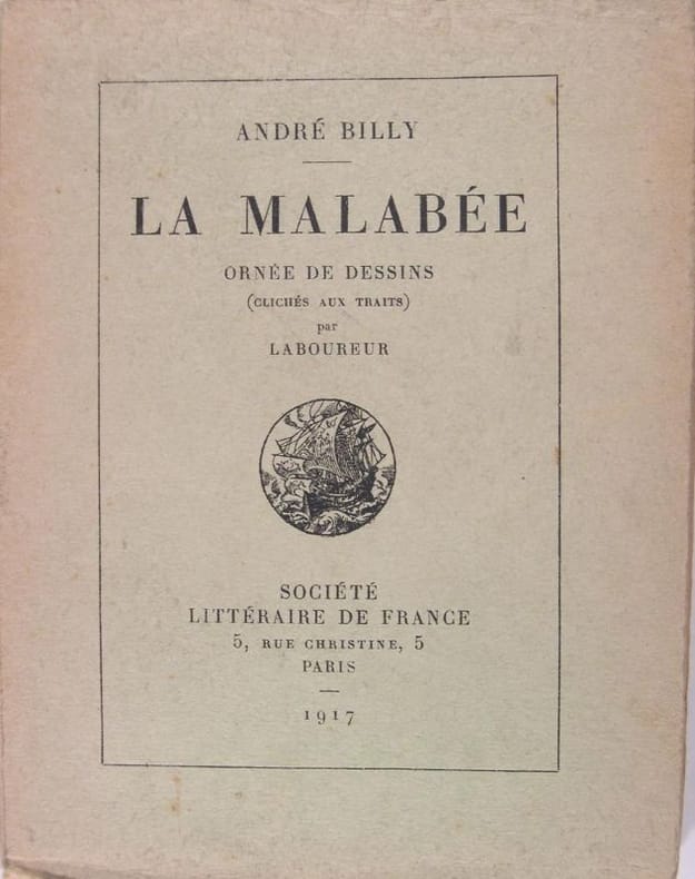 Paris Société Littéraire De France 1917 in-16 broché un volume, broché (paperback) in-seize (sextodecimo) carré, dos (spine) vert très légèrement insolé (lightly faded), cartouche de titre en pleine page sur la première de couverture (cartridge of title on full page on the front cover) trés légèrement défraichie (lightly faded) et quatrième de couverture muette légèrement épidermée (lights scratches)+ une tache d'eau (light waterstains) sur un demi centimètre carré, tranches non rognées (edges no smoothes), gouttière en partie non coupée (fore-edge partly uncut) - long papier (fore-edge - great paper), envoi autographe manuscrit de l'Auteur : "..à monsieur Lotz-Brissonneau avec la première pensée de ces Images...Août 1917 .. signé J E Laboureur..." , justification du tirage limité à 1000 exemplaires - 1 des 6 premiers exemplaires sur Chine (N°6) (limited edition - 1000 copies were printed), orné de 5 dessins en pleine page (clichés au trait) (full page engraving) en noir par J. -E. Laboureur, avec JOINT les 5 dessins originaux à l'encre noire et à la mine de plomb avec la mention manuscrite "... Original pour La Malabée 1917.." (à la mine de plomb), tous signés à l'encre noire en bas à gauche, (bien entendu, comme ce sont les dessins originaux, LABOUREUR a modifié au dernier moment quelques détails ........ c'est ce qui fait tout leur intérêt..!!!), trés légères cicatrices de mouillures (scars of waterstains) marginales en bas de quelques pages sur 2 millimètres, 107 pages, 1917 Paris Société Littéraire De France Editeur,
