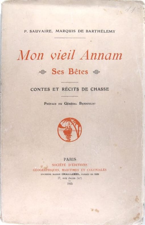 "Mon Vieil Annam est une succession de tableaux vigoureusement brossés où, dans leur habitat familier, l'on voit vivre et mourir les divers animaux qui peuplent la jungle annamite" - Lle Mundjack doré, le boeuf gaur, l'éléphant, le tigre, le buffle, le Banting, le con-héou, l'ours, le gibbon, le paon, le concathan etc. Voir le sommaire sur photos jointes.