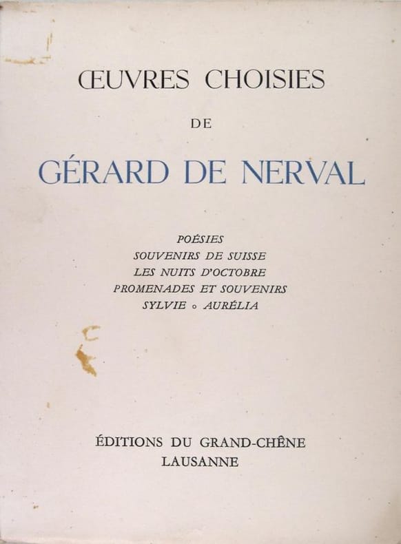 Editions du Grand-Chêne, Lausanne, 1948, in/8 broché, 347 pages. Exemplaire sur papier vergé sans bois, numéroté. Poésies - Souvenirs de Suisse - Les nuits d'octobre - Promenades et souvenirs - Sylvie - Aurélia.