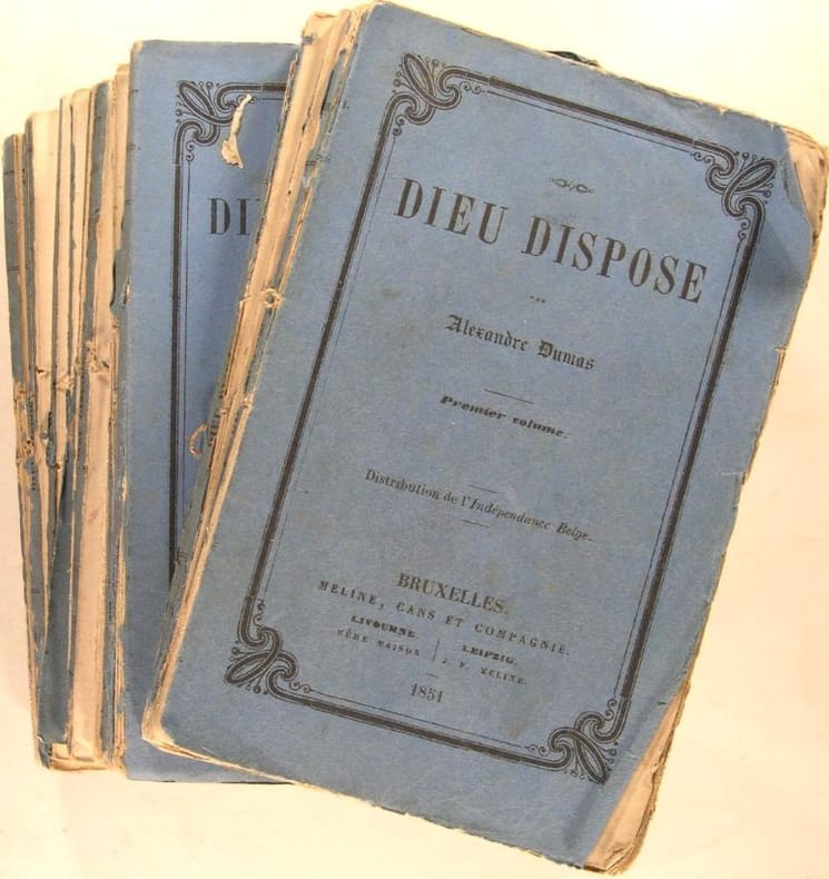 Distribution de l'Indépendance Belge, Bruxelles, 1851, 8 volumes, in/12 broché. 159p., 152p., 166p., 157p., 160p., 151 p., 171p., 171 pages ; avec des petits manques sur les dos, ainsi que le dos de couverture du vol. 2.