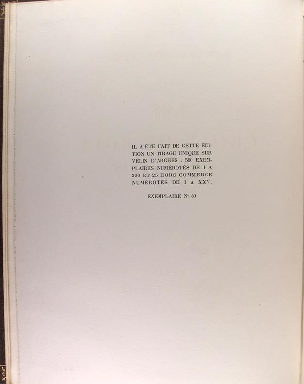 Paris, La Cité des Livres, 1928. Petit in/folio, 340 pages Reliure en plein maroquin marron, dos à nerfs avec titre doré, doré sur tête. Exemplaires numéroté sur vélin d' Arches N° 60/500.