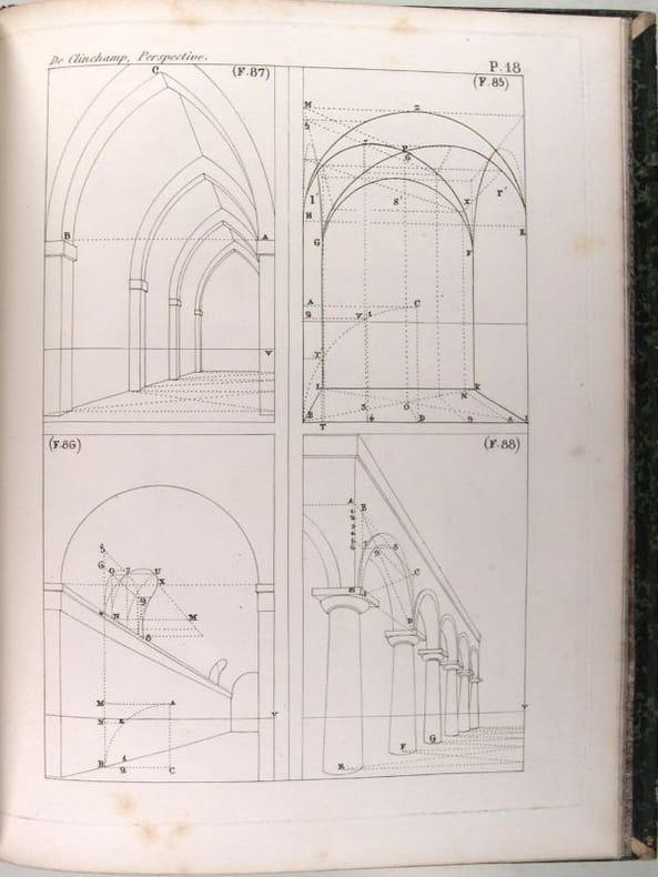 La réflections des miroirs plans, le tracé perspectif des plafonds sur diverses surfaces ; une analyse raisonnée de la perspective, ...