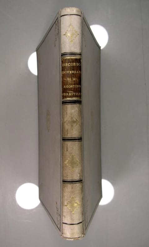 Gabriel Giolito di Ferrarii, Vinetia [Venise], 1574. Grand In-8, reliure en cartonnage du dix-neuvième siècle, plats en velin blanc encadrés d’un filet noir et orné de 5 fleurons dorés, dos lisse orné, pièce de titre en basane brune. 4 ff. n. ch., 231 pages, 32 ff. n. ch. Très belle impression vénitienne orné de grandes lettrines historiées. En romaines et italiques, chaque fin de partie formant un triangle typographique. Mors fendus, un coin légèrement abîmé. Bel état de fraîcheur des feuillets.