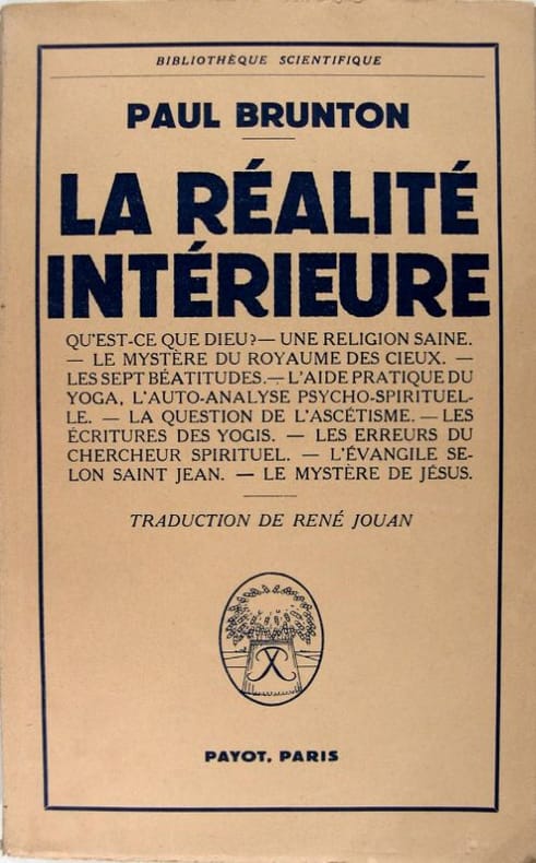 Payot BROCHE CORRECT EXEMPLAIRE TRES LEGEREMENT ANNOTER ANCIENS TRACES DE SCOTCH La réalité Intérieure. qu' est ce que Dieu ? - Une Religion Saine - Le Mystère Du Royaume Des Cieux - Les Sept Béatitudes - L' Aide Pratique Du Yoga, l' Auto Analyse Psycho - Spirituelle - La question de l' ascètisme - Les écritures ... , BRUNTON (Paul) traduction de rene jouan (Payot, Collection Bibliothèque scientifique, Broché, 1955