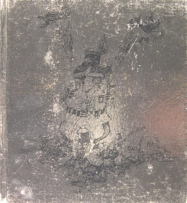 1968 Morel Robert Célébration N° 157, 1968, nouvelle édition revue et augmentée. in-12, carré, 46 pages, reliure illustrée,cartonnage bradel aluminium illustré, papier argenté,petit manque au dos de papier argenté,texte frais