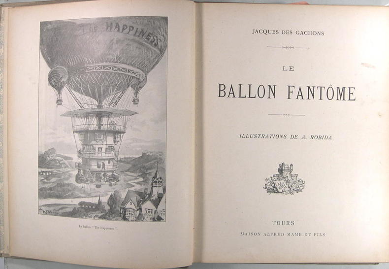 Tours Maison Alfred Mameet Fils sans date vers 1922, in/4 reliure de l'éditeur pleine toile illustrée d'une Mntgolfière, 142 pages Illustrations en noir de A. Robida.