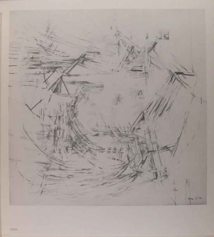 Editions Jeanne Bucher 1969, plaquette, in/4 broché, XXX planches en noir. Les "irrésolutions résolues" de Viera Da Silva, suite d'oeuvres réalisées sur toile ou sur papier à la tempera, au fusain, au lavis et à l'huile durant l'été 1969, ont été présentées à la galerie Jeanne Bucher.